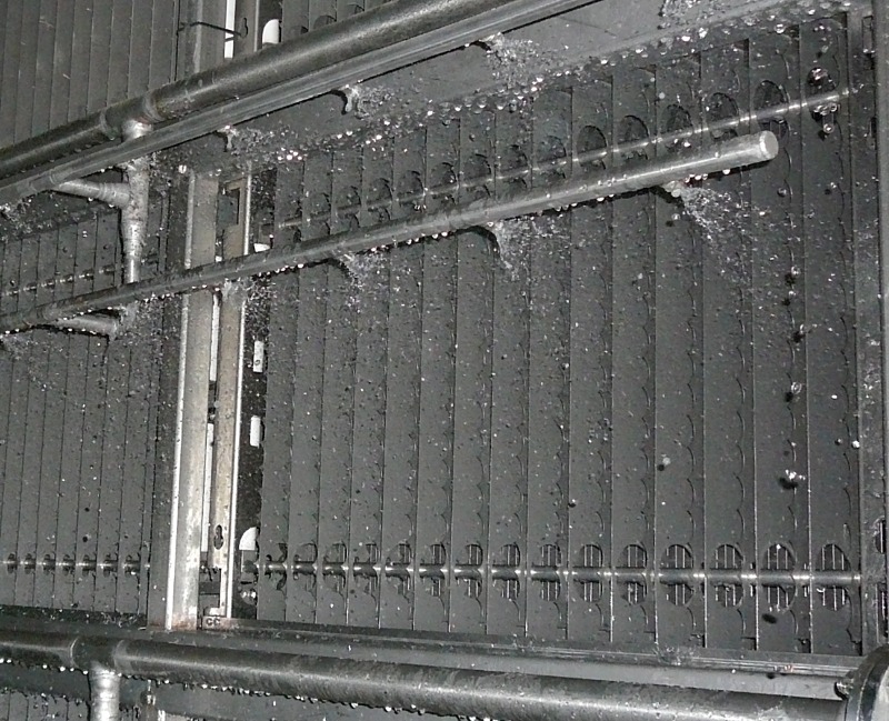 Die mit Feinstaub beladenen Kollektorplatten werden regelmäßig automatisch gereinigt Dabei werden die Platten über Sprühdüsen mit Wasser abgespült. Während des Reinigungsprozesses sind die Filtermodule spannungsfrei geschaltet, um einen sicheren Betrieb zu gewährleisten.